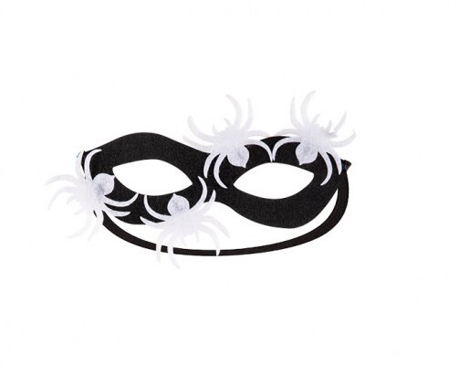 Polomaska z černé látky s bílými pavoučky. Originální doplněk, ideální pro dotvoření halloweenského kostýmu.