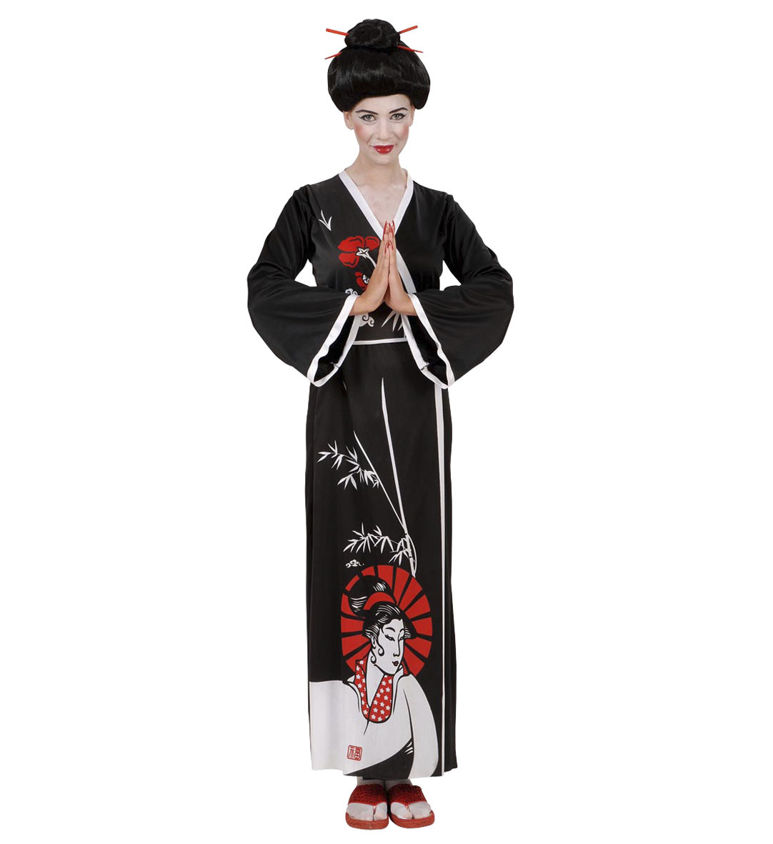 Kostým gejša. V rukávech jsou otvory pro vložení kapesníčku atd.