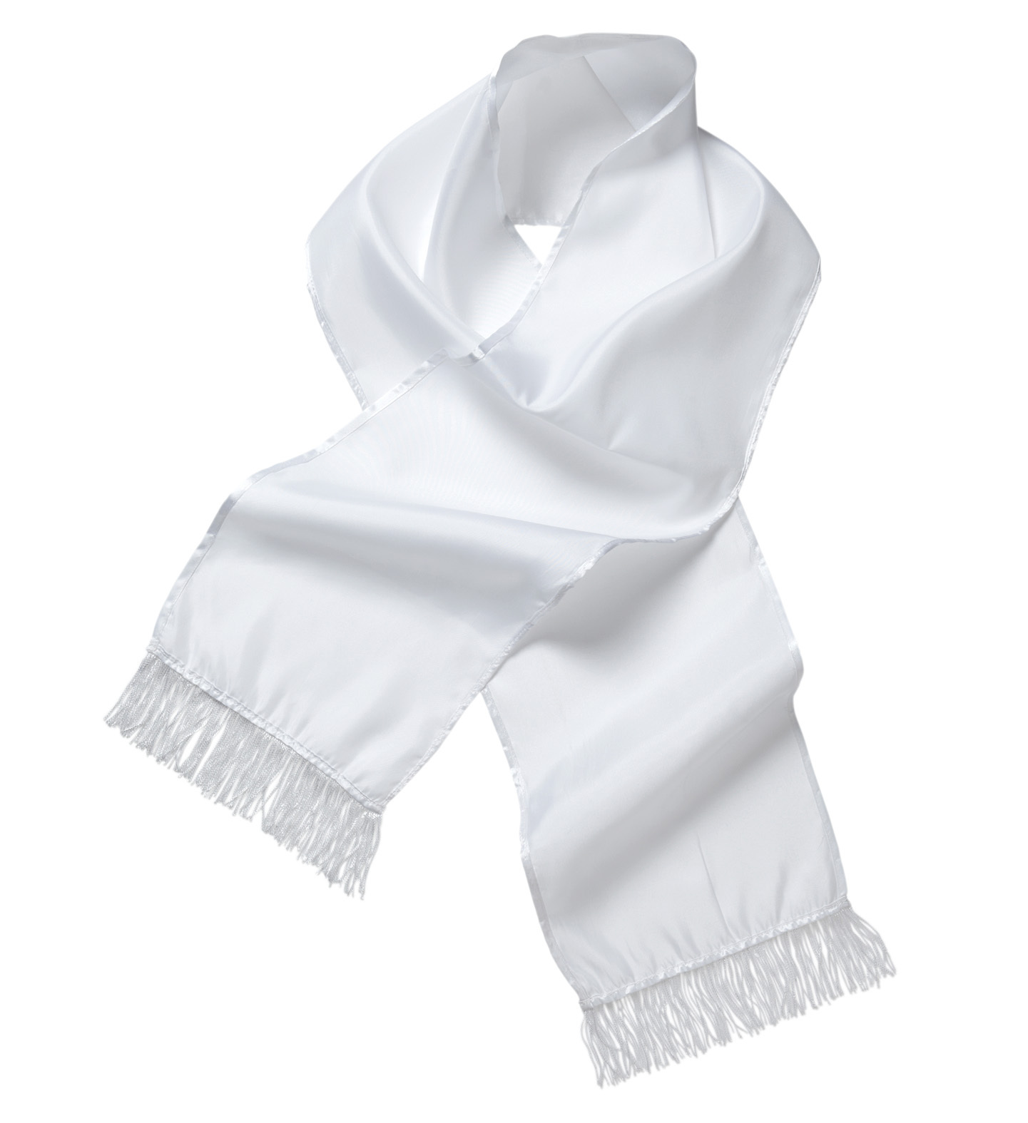 Elegantní bílá saténová šála, která dokonale doladí váš outfit!