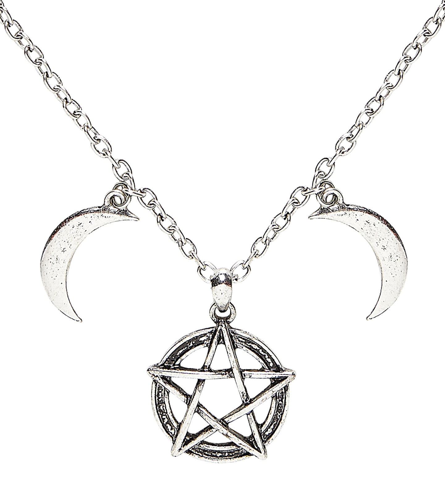 Esoterický náhrdelník, vhodný pro převlek např. za čaroděje, čarodějnici, kovový.
