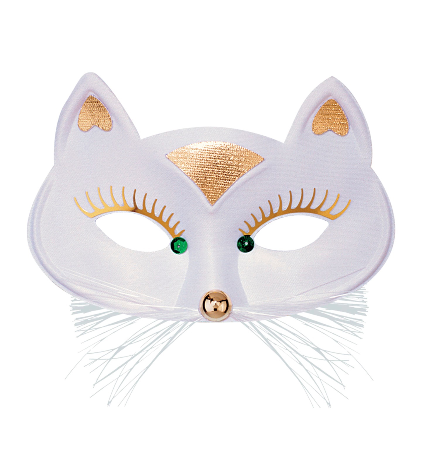 Škraboška karnevalová kočka, látková, s vousky, řasami a kamínky