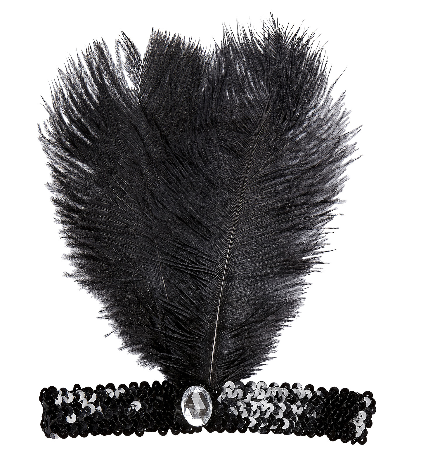 Černá flitrová čelenka s peřím a kamínkem, 20´léta