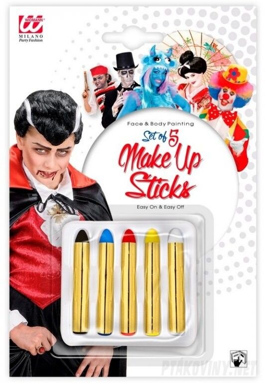 Karnevalový make-up, 5 tužek, černá, modrá, červená, bílá, žlutá