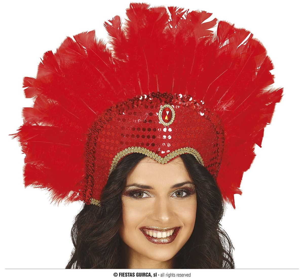 Fiestas Guirca Červená péřová čelenka s flitry Samba