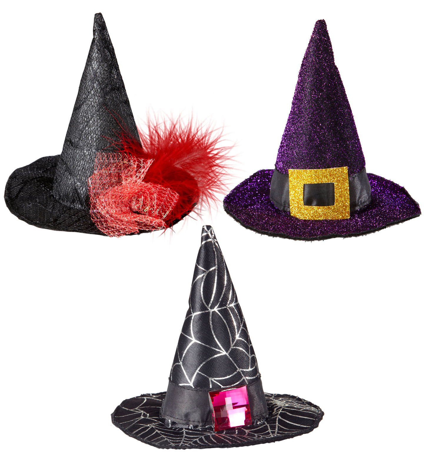 Látkový čarodějnický miniklobouček na klipsnu. Vhodný doplněk pro slet čarodějnic.