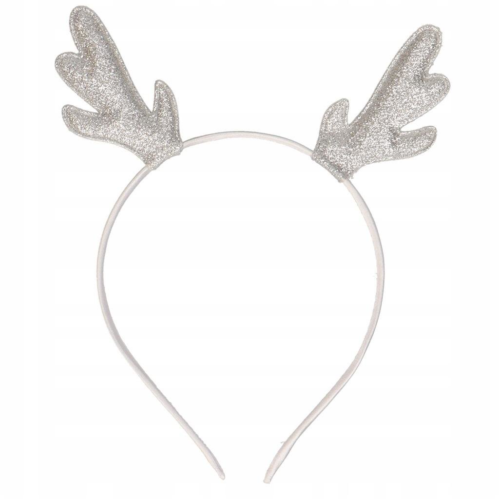 Świąteczna opaska z rogami renifera. Ozdobiona pięknymi rogami wykończone brokatowym materiałem. Sama opaska pokryta tkaniną.