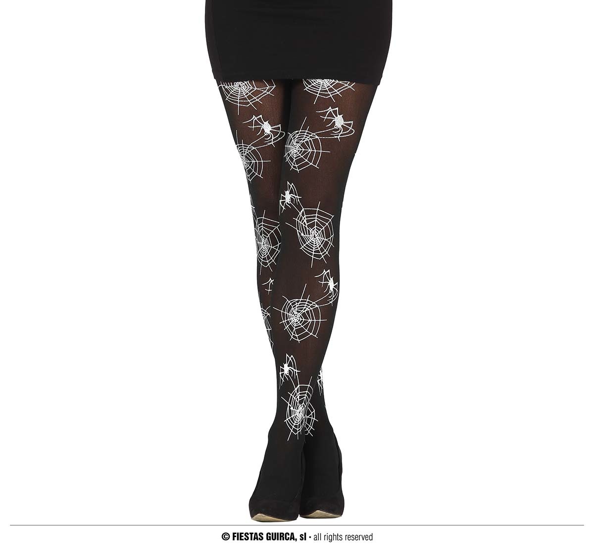 Černé dámské punčochy s bílými pavučinami a pavouky - ideální doplněk každému dámskému Halloween kostýmu.