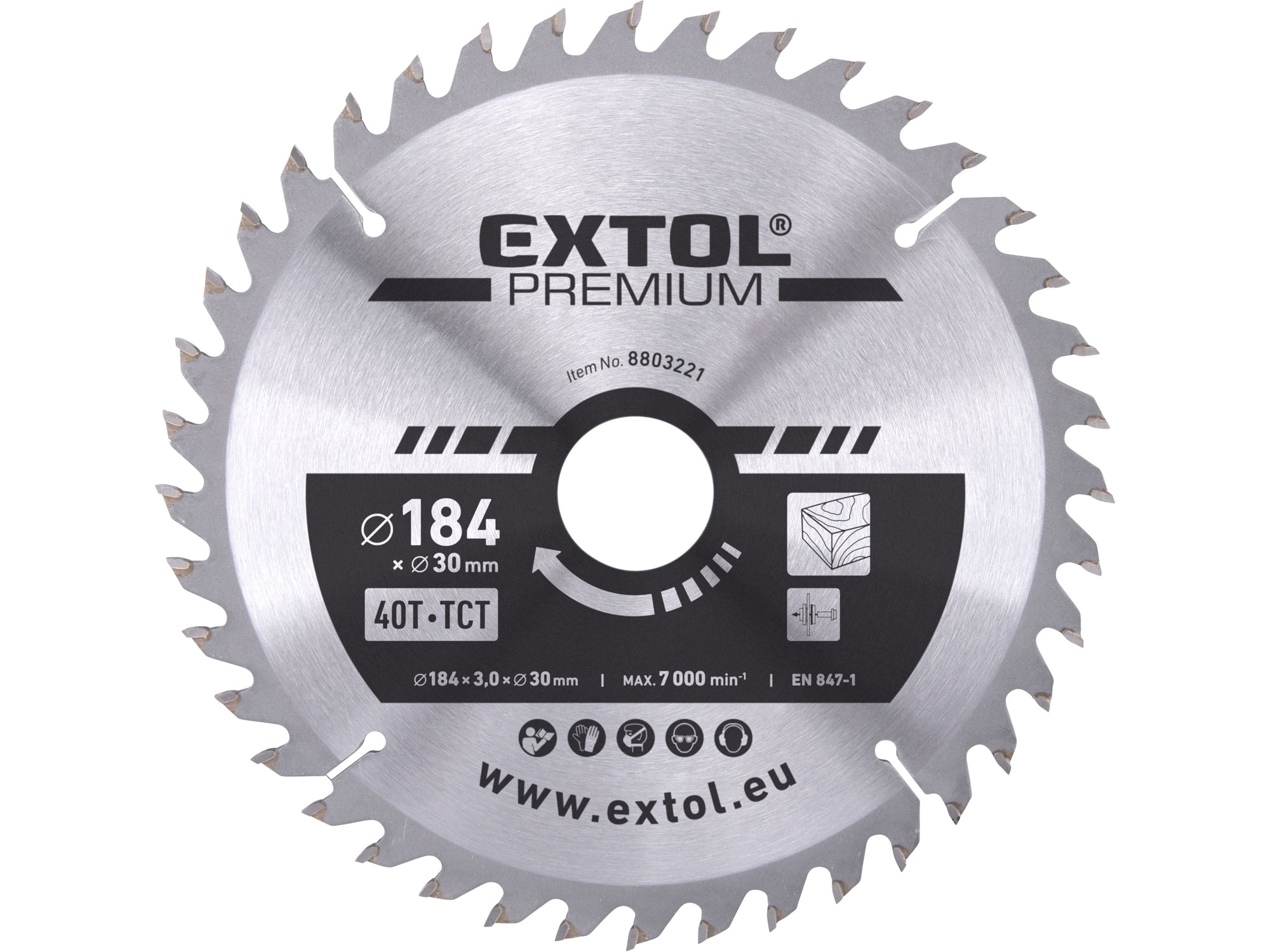 EXTOL PREMIUM kotouč pilový s SK plátky, O 184x3,0x30mm, 40T