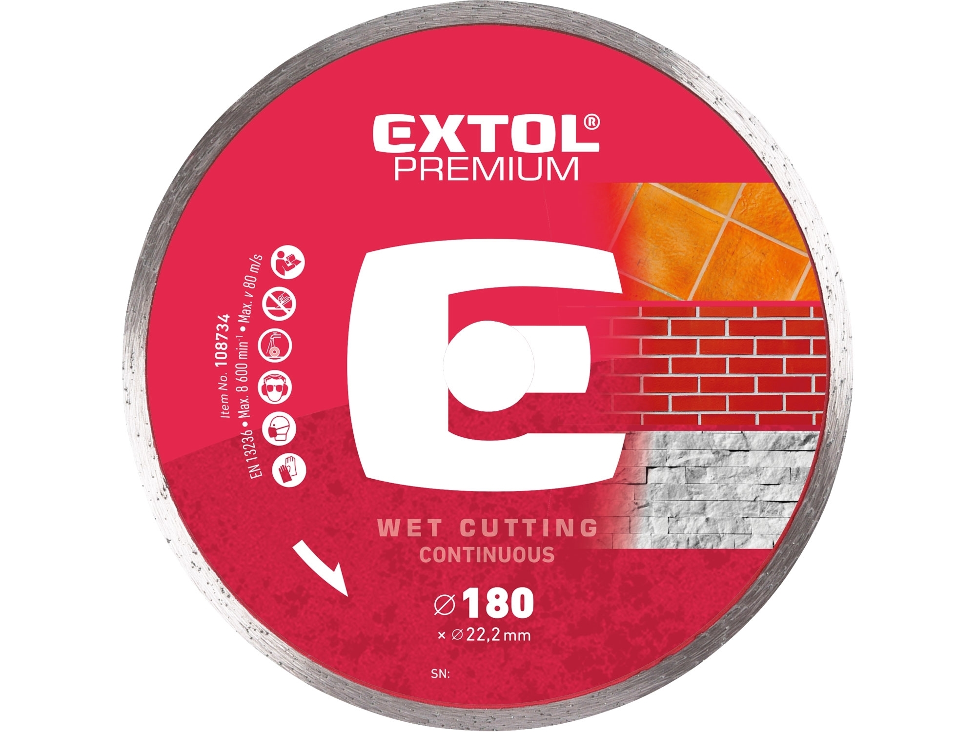 kotouč diamantový řezný celoobvodový - mokré řezání, O 180x22,2x2,5mm