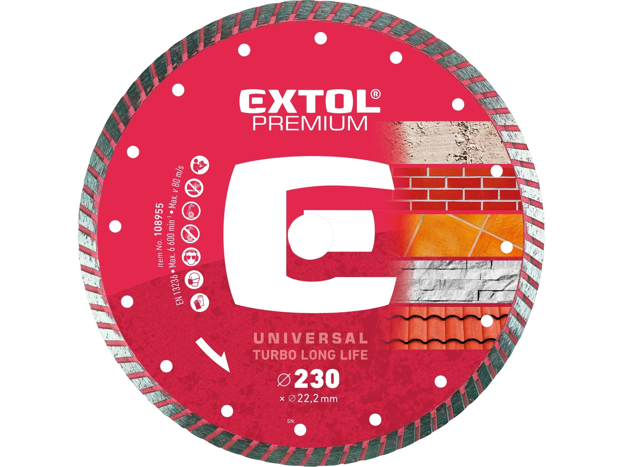Řada diamantových řezných kotoučů LONG LIFE s prodlouženou životností pro profesionální a poloprofesionální použití. Díky složení diamantové směsi a výšce segmentu mají kotouče až o 50% větší řezný výkon než ostatní Extol Premium kotouče.