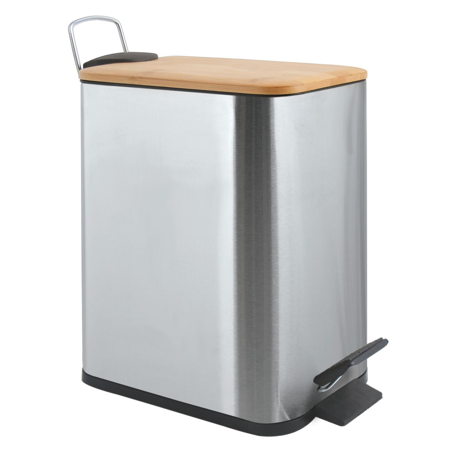 Spirella pedálový odpadkový koš ERIK, kartáčovaná nerez ocel, bambusové víkom 5 L