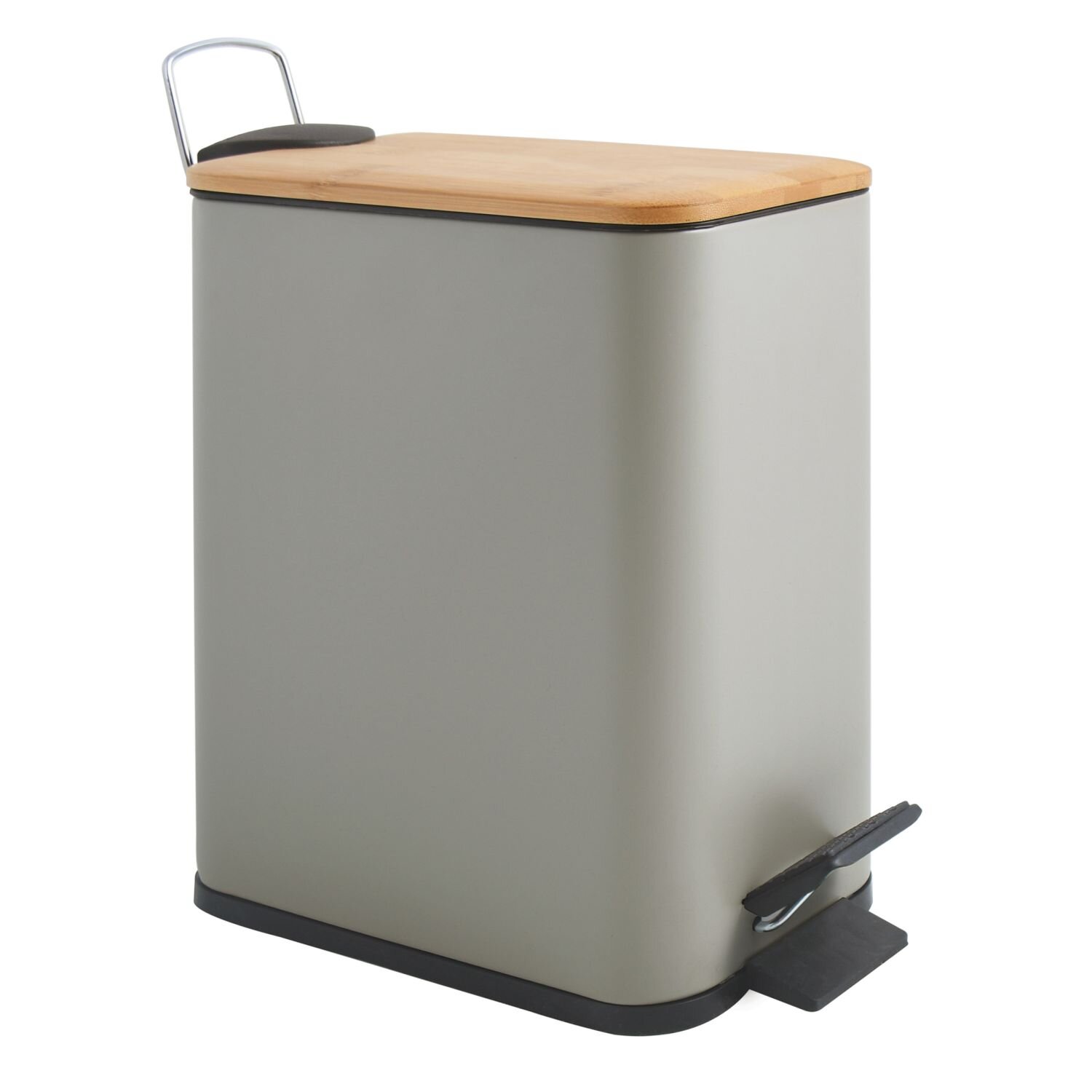 Spirella pedálový odpadkový koš ERIK, šedo-hnědá, ocel, bambusové víko, 5 L
