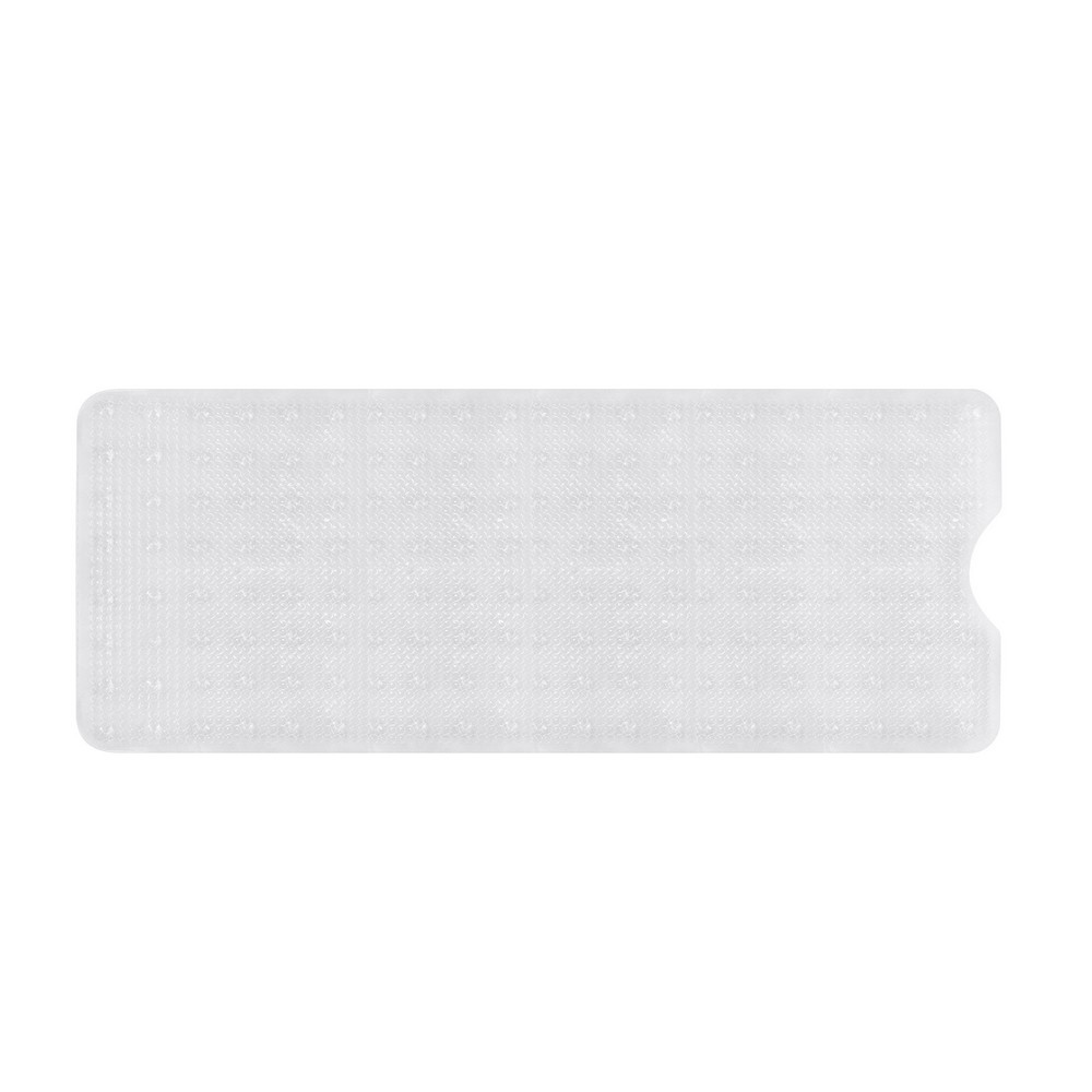 Protiskluzová antibakteriální podložka s přísavkami prodloužené velikosti, vhodná do vany i sprchy. Vyrobeno z PVC. Barva transparentní bílá. Rozměry 99 x 40 cm. EAN 5901812359520