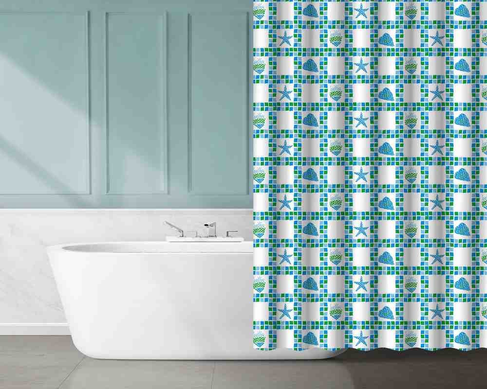 Závěs koupelnový 180x180cm dekor, PEVA dekor modrozelená