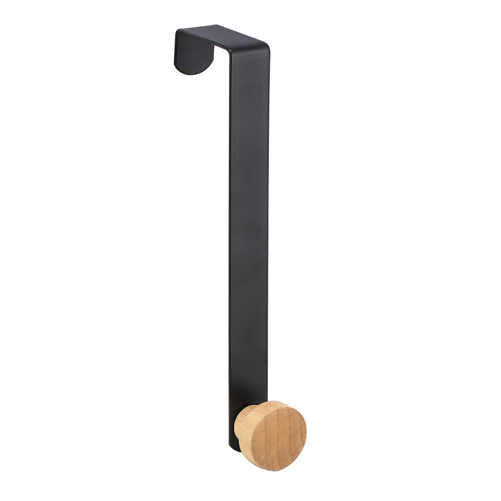 ČERNÝ KOVOVÝ JEDNODUCHÝ VĚŠÁK S BAMBUSOVÝM HÁČKEM 3X2.5X20CM