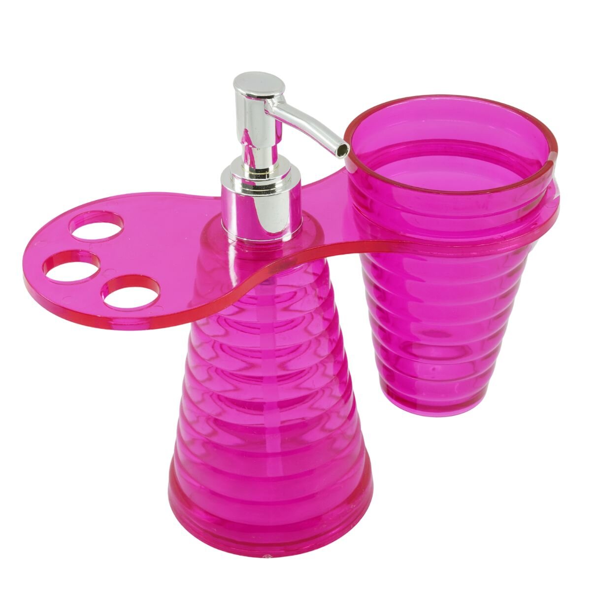 - 3 praktické doplňky v jedné sadě: dávkovač na tekuté mýdlo, kelímek na zubní kartáčky a mýdlenka pro tuhé mýdlo