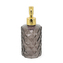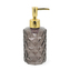 Moderní dávkovač COPO má jednoduchý tvar navržený na kruhovém půdorysu a na jeho rovných stěnách jsou symetrické strukturované kosočtvercové dekory. Poloprůhledná barva stěn s šedým odstínem navíc zajišťuje snadný přehled o obsahu. Elegantní tvar dávkovače COPO připomíná křišťál nebo drahý kámen a zlatá povrchová úprava (pumpička) podtrhuje jeho klasický charakter. Objem: 330 ml.