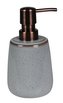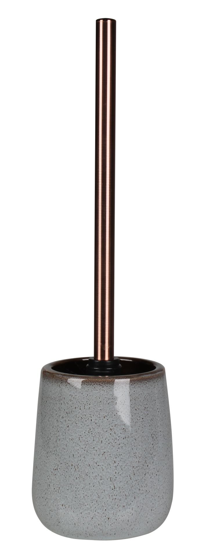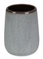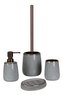 Koupelnový set z glazované keramiky v trendových barvách a vzorech. Sestava se skládá z kalíšku na zubní kartáček, dávkovače na mýdlo a toaletní štětky .