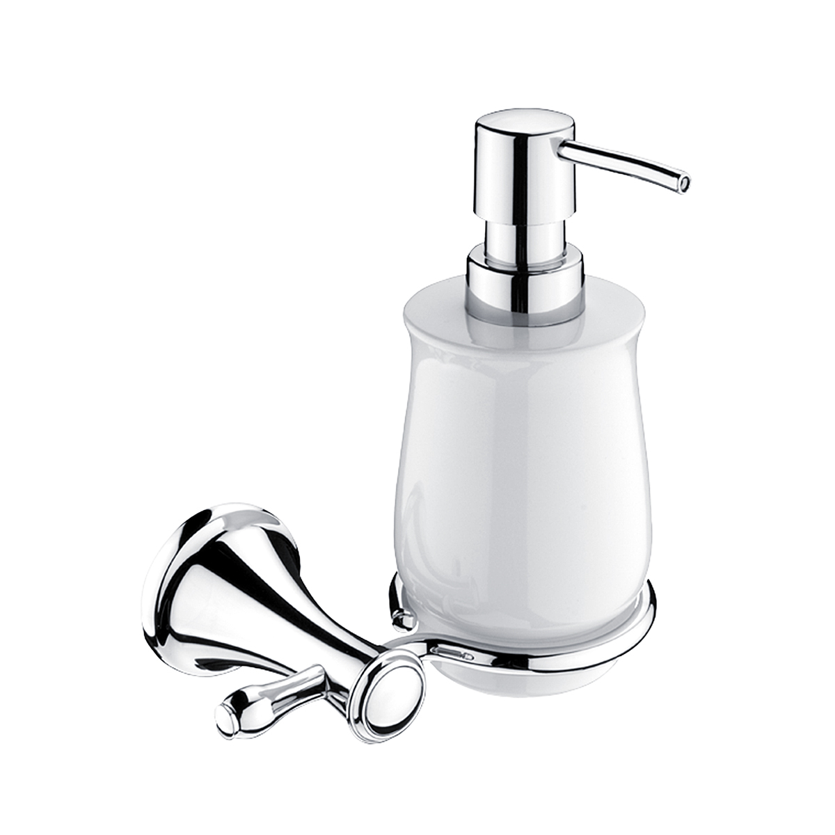 Retro keramický dávkovač tekutého mýdla s držákem na zeď chrom je skvělým doplňkem do koupelny. Interiér koupelny v retro stylu se vyznačuje svou elegancí s romantickým nádechem. Dává přednost vícero střídmým dekoracím a zaměřuje se na preciznost detailu. Máte-li v plánu zařídit si retro koupelnu, série LADA je tu právě pro vás.