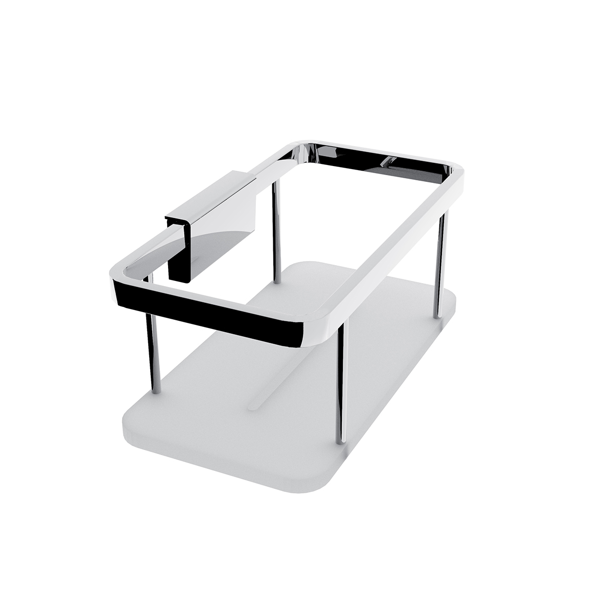 Chromová polička z akrylového skla s chromovanou ohrádkou určená do sprchy nebo k vaně. Minimalistický design koupelnové poličky umocňují použité materiály a vyfrézované otvory pro lepší odkapávání vody. Odkládací plocha poličky je vyrobena z matně bílého akrylového skla o tloušťce 8 mm. Nosnost poličky 2 kg. Montáž lepením, vrtáním. Lepidlo MAMUT není součástí balení výrobku. Lze je dokoupit pod artiklovým číslem 35003TU.