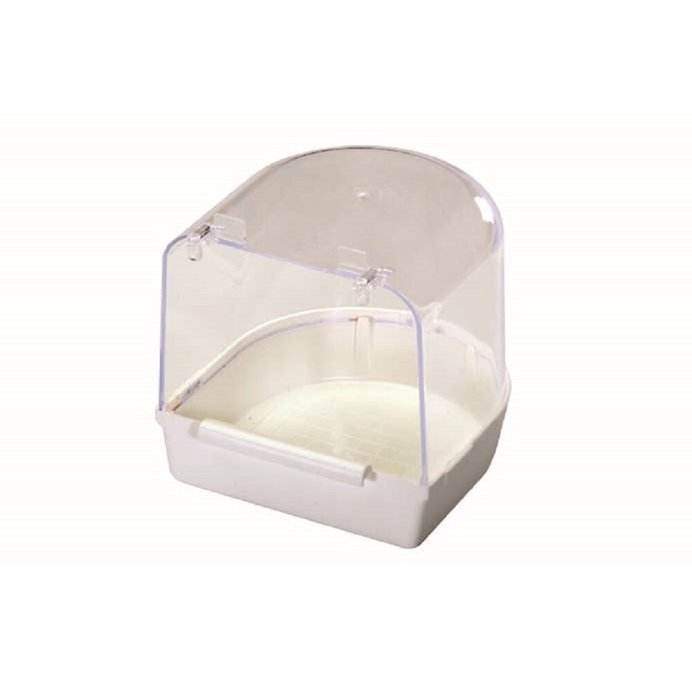 Tato koupelna je vyrobena z průhledného plastu a má elegantní bílou barvu, která nepřebíjí vzhled klece a snadno zapadne do jakéhokoliv prostředí. Je dostatečně prostorná, s rozměry 13 x 13 x 13 cm, aby poskytla ptákům volnost při koupání a zároveň zabránila rozstřikování vody mimo klec. Navíc poslouží i jako napáječka - ptáčci z ní mohou pohodlně pít.