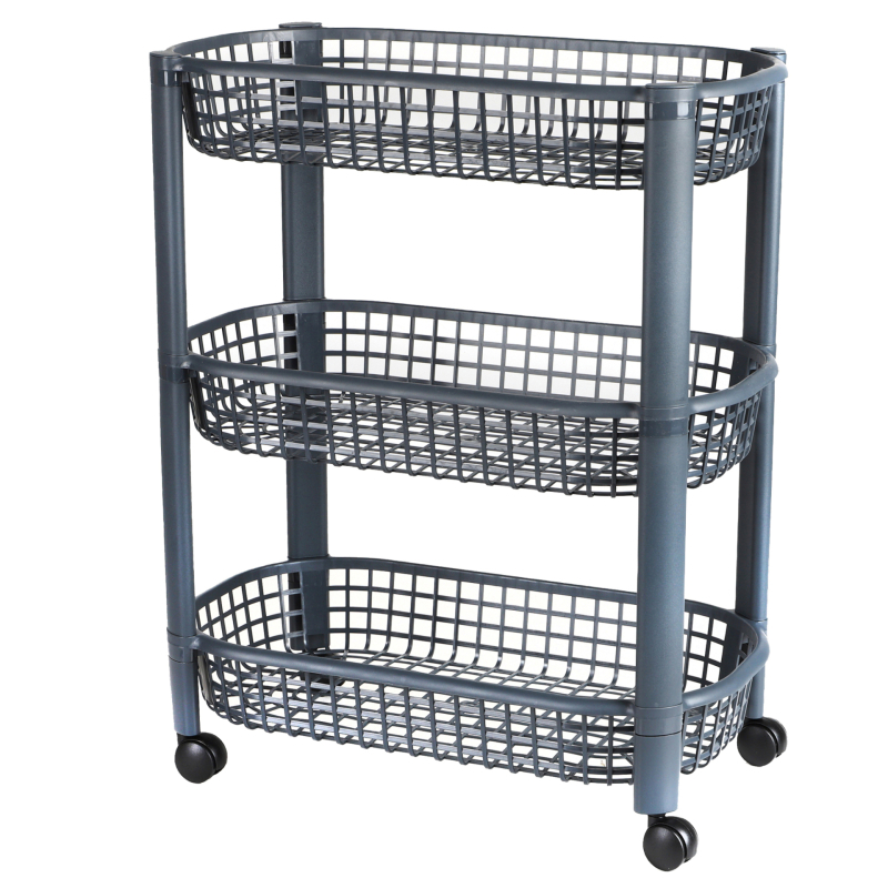 DOCHTMANN Úložný vozík pojízdný, 3 police, šedý, 46,5x26x58,8cm
