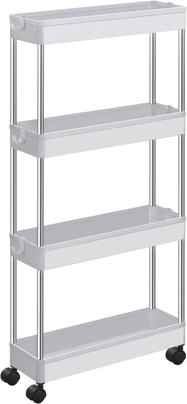 SONGMICS Plastový regál pojízdný, 4 police, bílý, 40x12,5x88cm