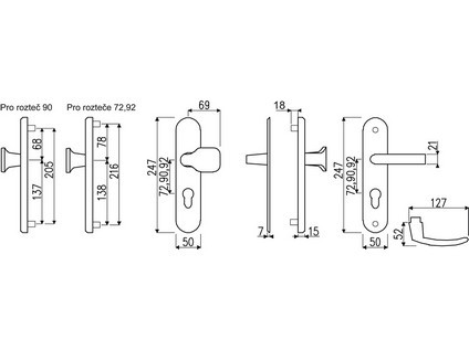 Hliníkové bezpečnostní kování - madlo / klika bez překrytí vložky.