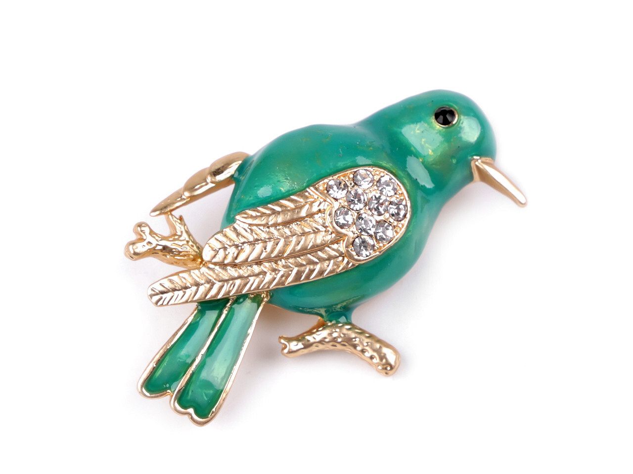 Brož s broušenými kamínky ptáček - 1 ks - 1 zelená pastelová