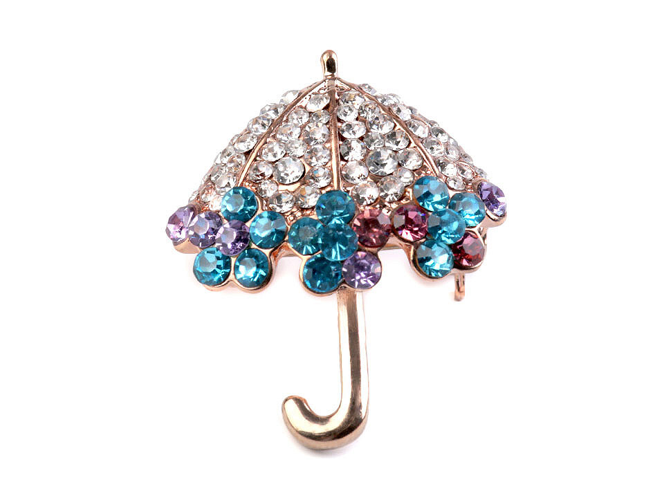 Brož č.1 - deštník - může mít různé barevné kombinace kamínků.