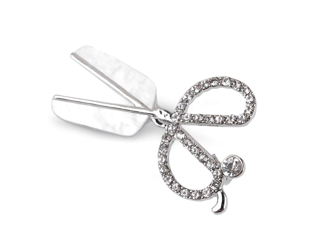 Brož s broušenými kamínky nůžky - 1 ks - 1 crystal platina