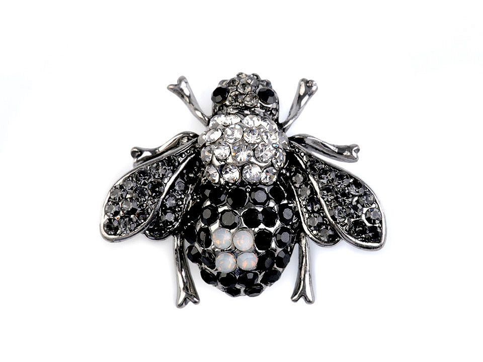 Brož s broušenými kamínky deštník, včela - 1 ks - 2 nikl černý včela