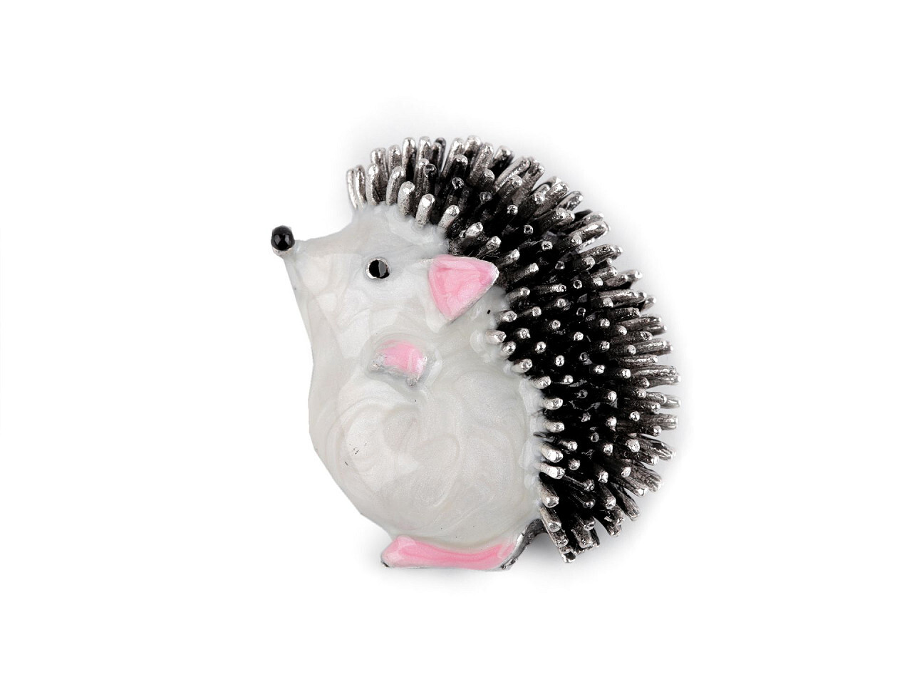 Brož šneka nebo ježka s barevným smaltem bude zajímavou ozdobou vašeho oděvu. Šneci jsou zkrášlení třpytivými broušenými kamínky, ježci mají kovově lesklé bodliny. Ze zadní strany mají brožový špendlík.