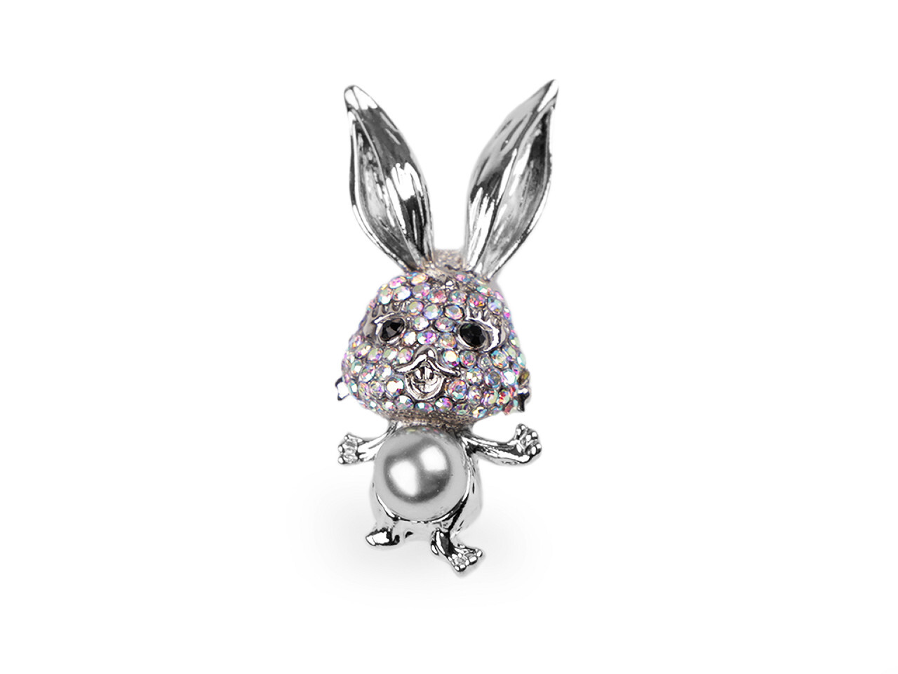 Brož s broušenými kamínky králík, pes - 1 ks - 2 crystal AB králík