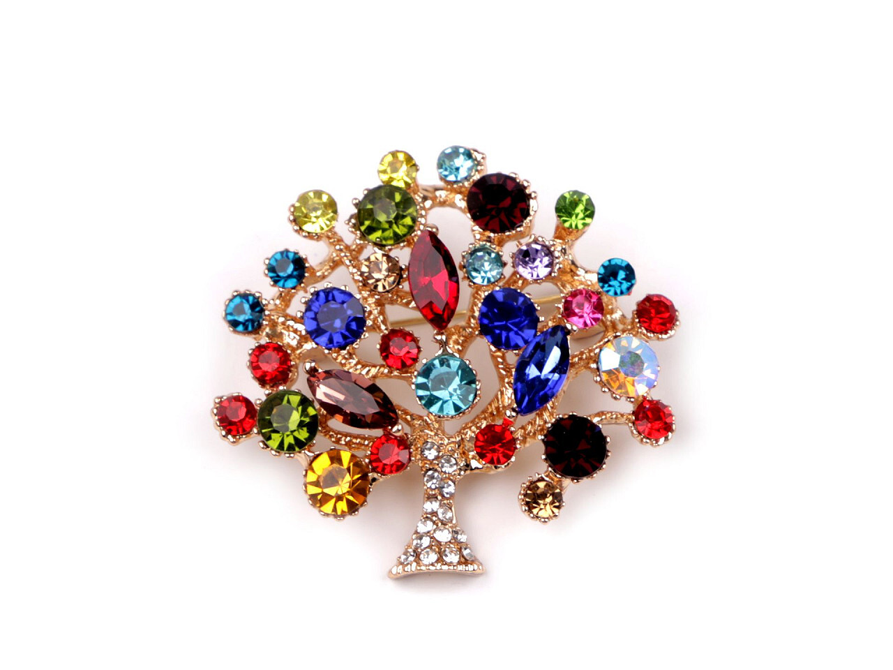 Brož s broušenými kamínky strom života - 1 ks - 2 multikolor
