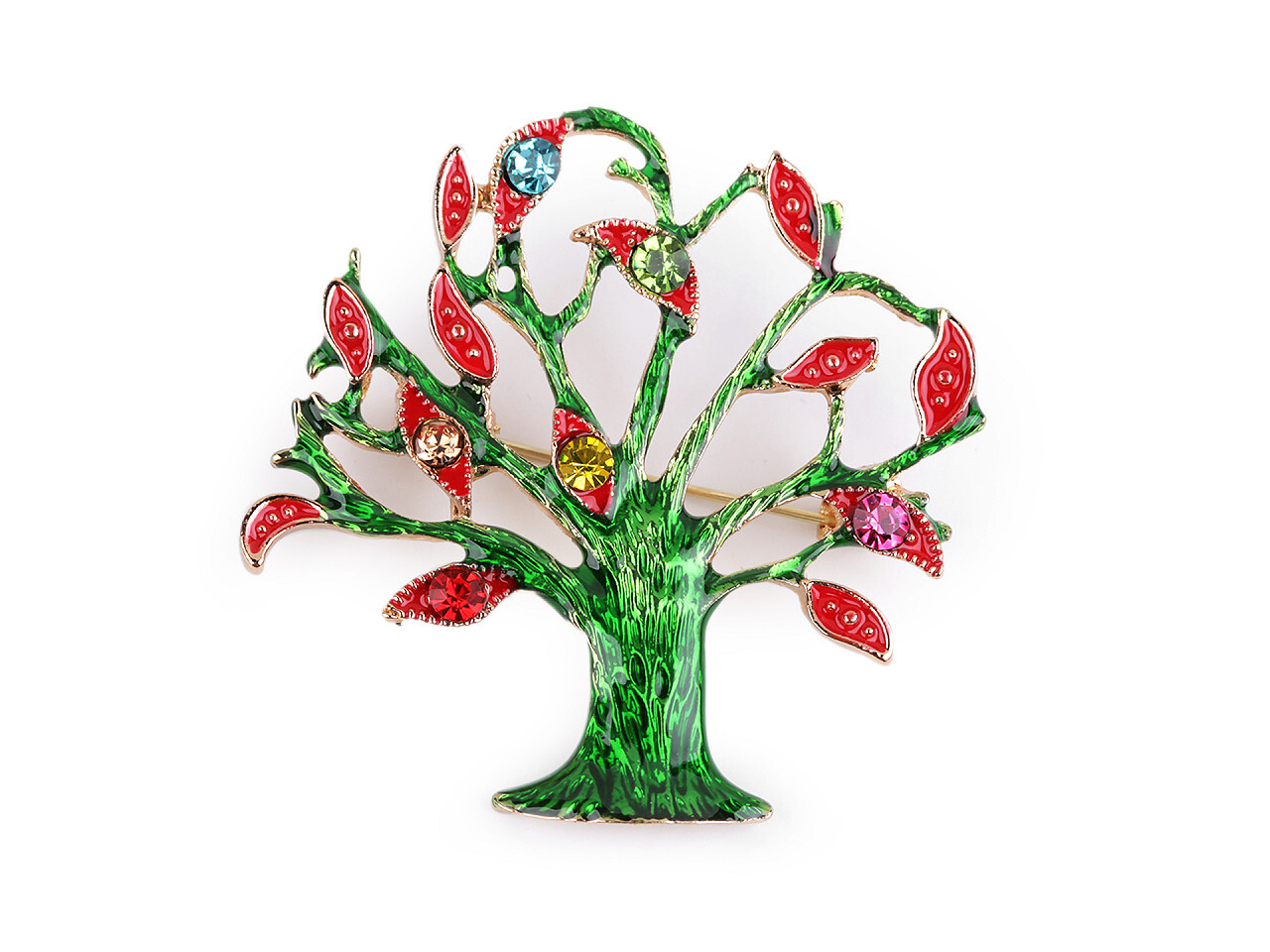 Brož s broušenými kamínky strom života - 1 ks - zelená