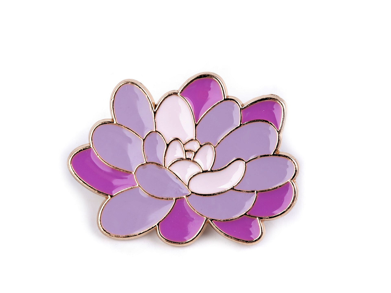 Brož / odznak květ, čtyřlístek - 1 ks - 3 fialová sv. květ