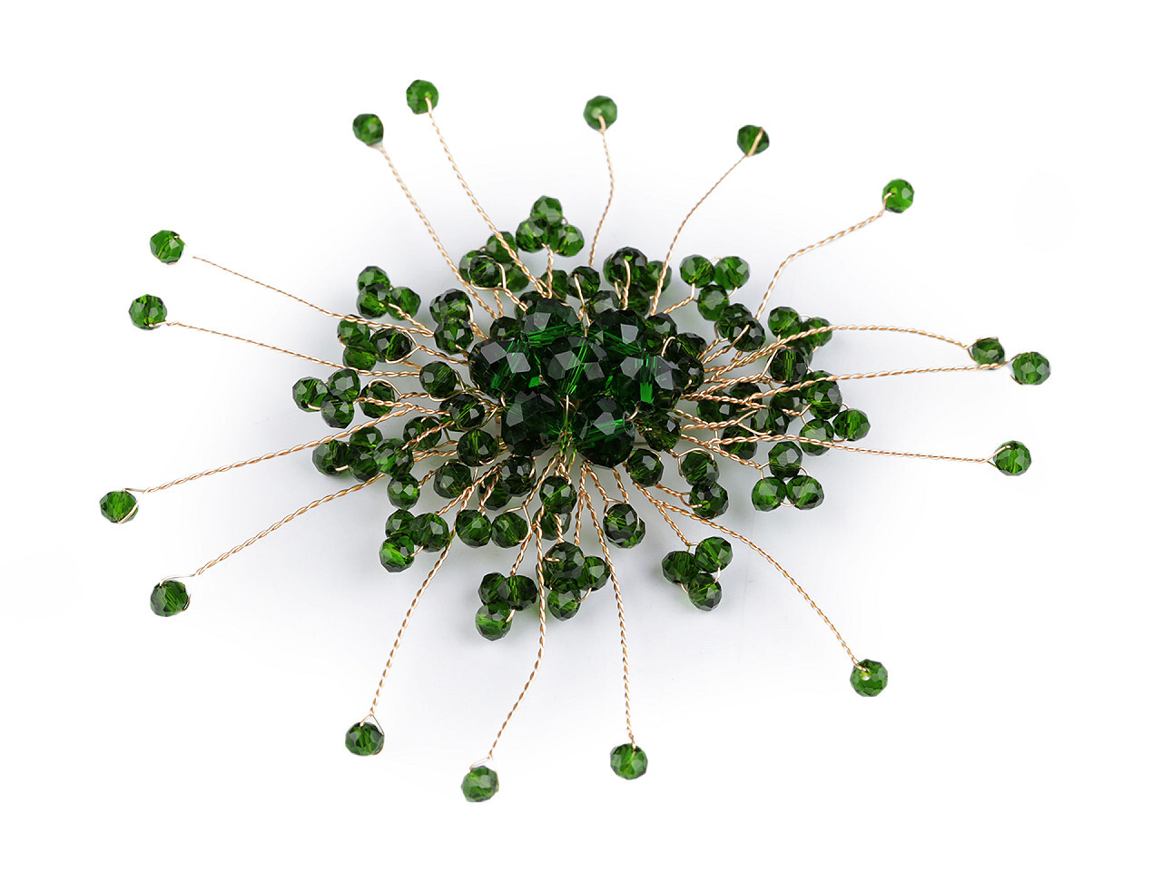 Brož se skleněnými broušenými korálky Hand made - 1 ks - 7 (7) zelená zlatá