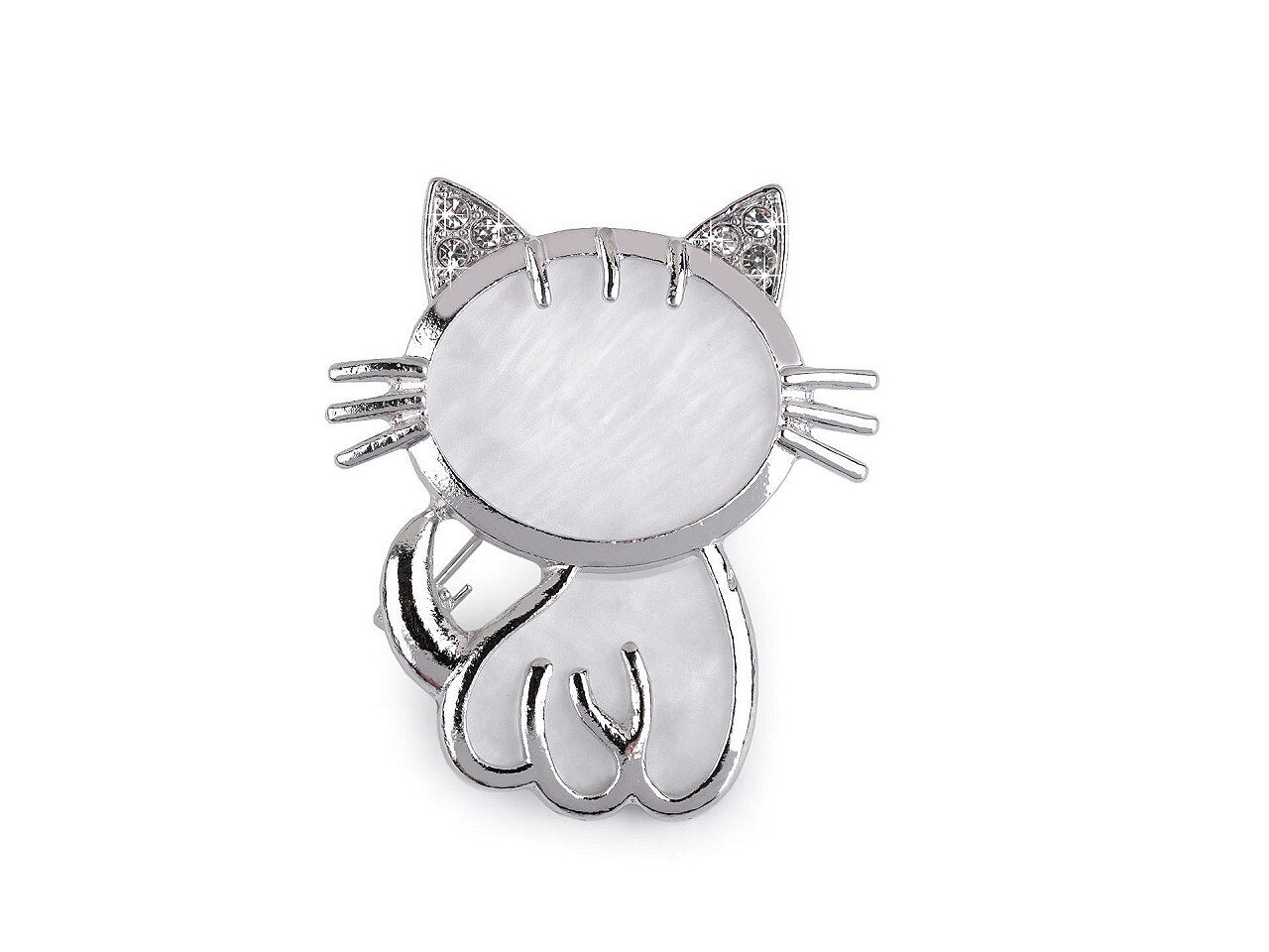 Brož s broušenými kamínky kočka - 1 ks - bílá perleť