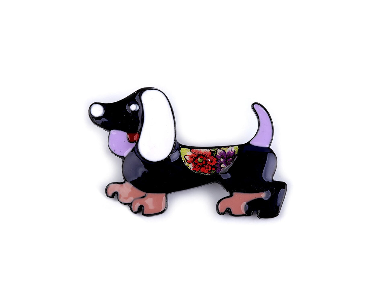 Brož jezevčíka s barevným smaltem je doplněk, který okamžitě upoutá pozornost. Svým designem spojuje hravost s elegancí, což z brože činí ideální volbu pro milovníky zvířat i módních trendů. Z rubu má brožový špendlík. Můžete ji nosit nejen na oděvech, hodí se i k ozdobení klobouků, tašky či sepnutí šátku. Je skvělým dárkem pro každého, kdo ocení originální a hravé módní doplňky.