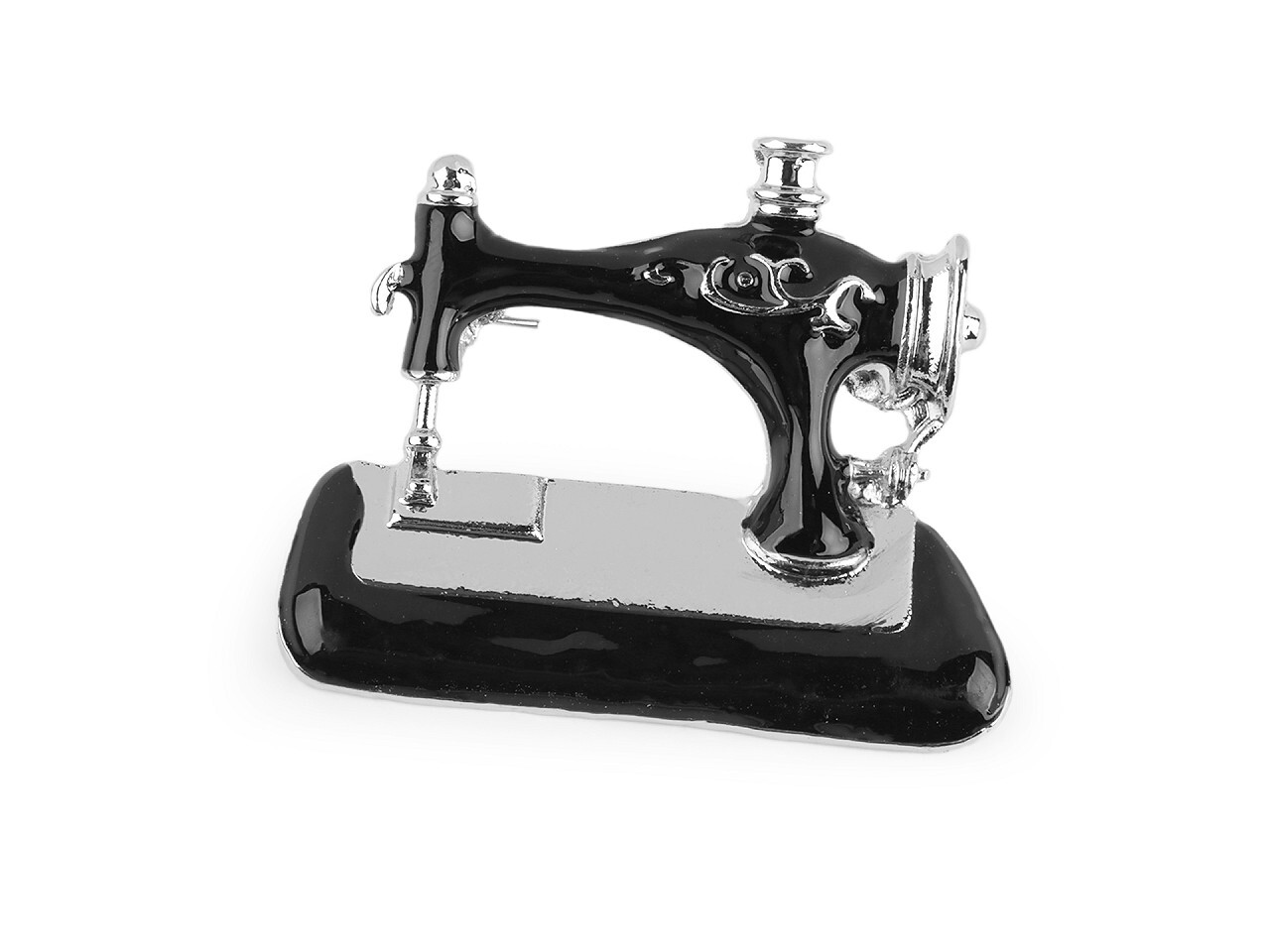Brož šicí stroj - 1 ks - 3 černá stříbrná