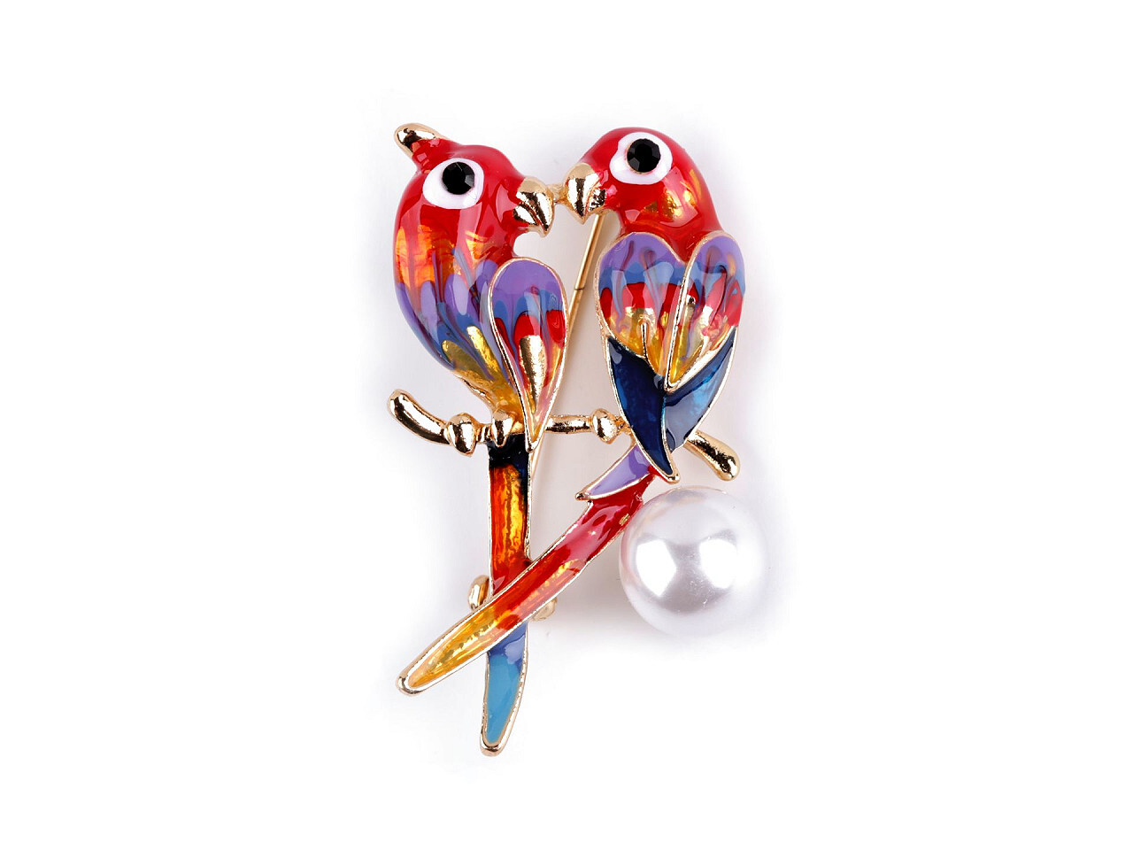 Brože č.1 a 2 - papoušci jsou ozdobené perlou.