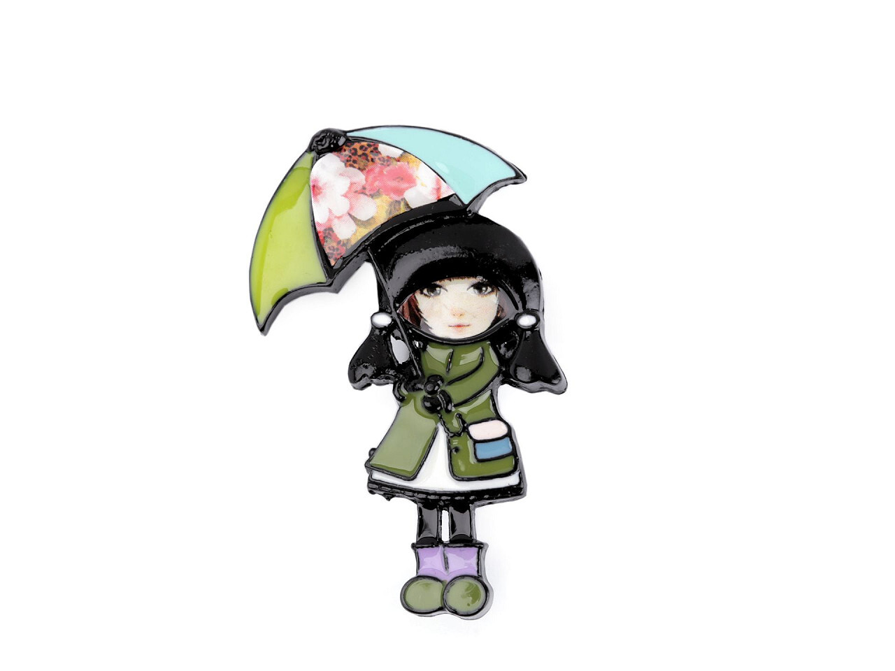 Brož holčičky s deštníkem je ozdobená barevným smaltem. Tento hravý kousek můžete využít na běžné nošení, je oblíbená i u dětí a slečen školou povinných. Můžete ji nosit na oděvech, kloboucích, taškách či s ní můžete ozdobně sepnout šátek. Na zadní straně má brožový špendlík.