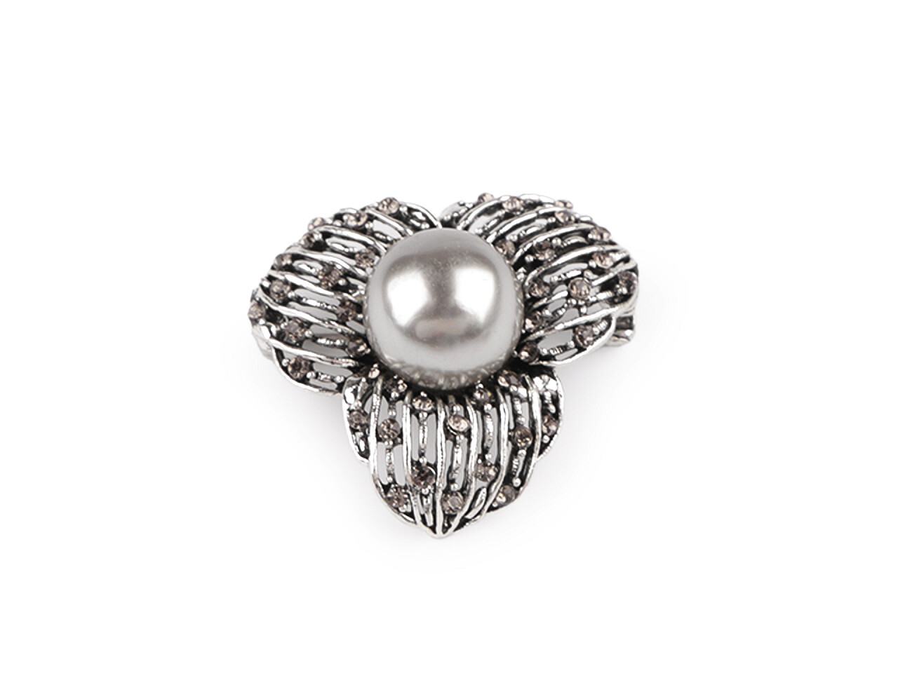 Brož s broušenými kamínky a perlou - 1 ks - 2 stříbrná