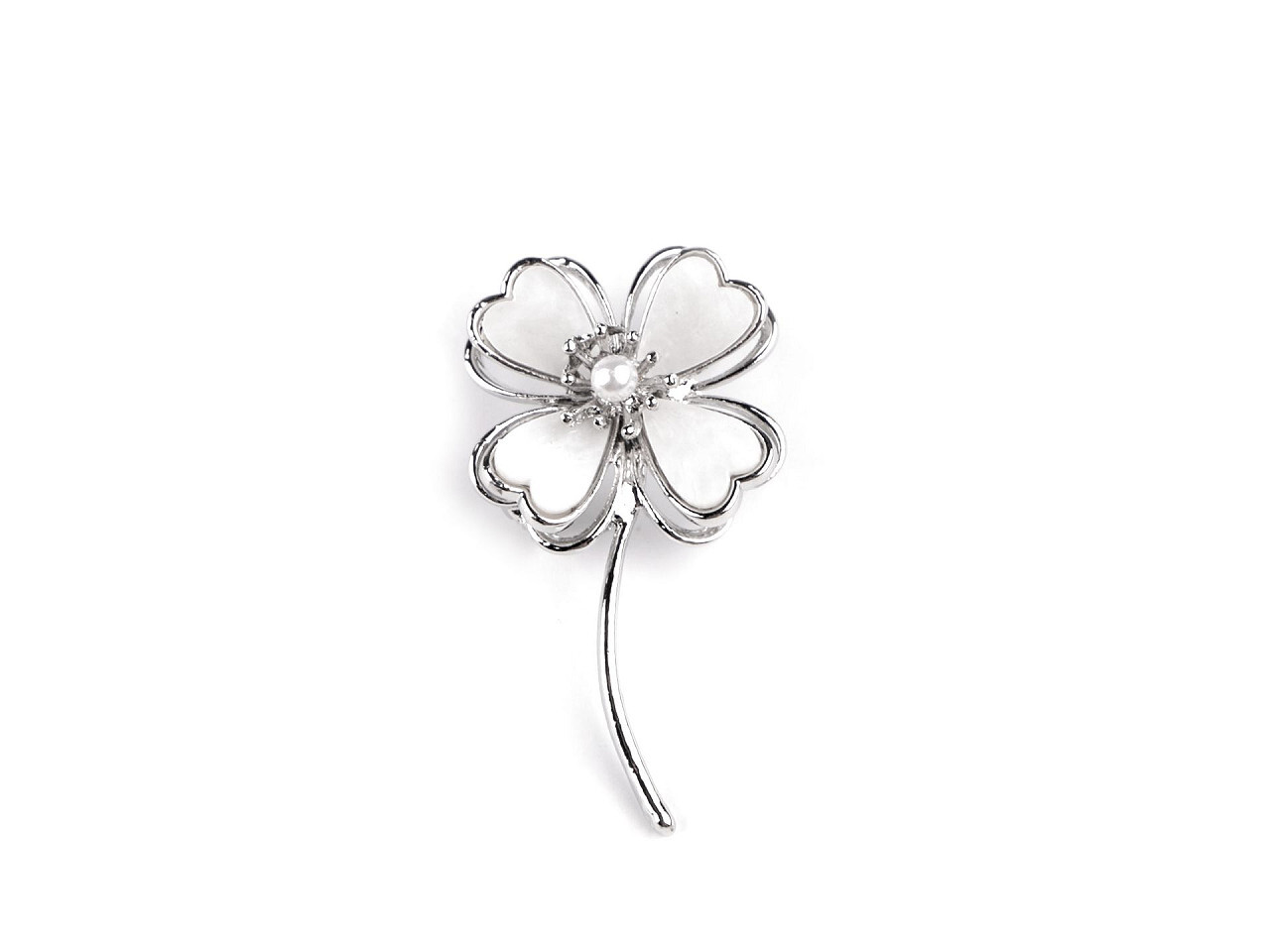 Brož ve tvaru květu je ideálním dárkem pro kteroukoliv ženu. Okvětní plátky má ozdobené imitací perleti, která má nádherný lesk. Perfektně se hodí jak pro formální události, tak pro každodenní nošení, kdy chcete přidat trochu elegance do vašeho dne. Zapíná se pomocí brožového špendlíku.