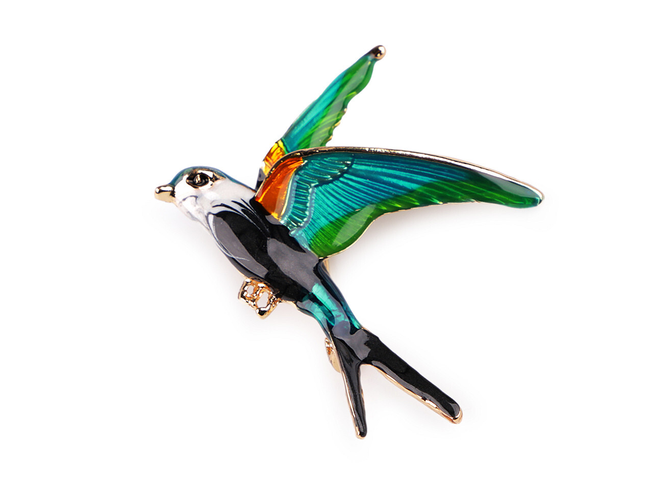 Brož ptáček s barevným smaltem vás uchvátí svou duhovou hrou barev. Je velice elegantní, můžete ji využít na běžné nošení i na společenské události - návštěvy divadel, oslavy apod. Z rubu má brož zavírací špendlík. Můžete ji nosit nejen na oděvech, hodí se i k ozdobení klobouků, tašky či sepnutí šátku.