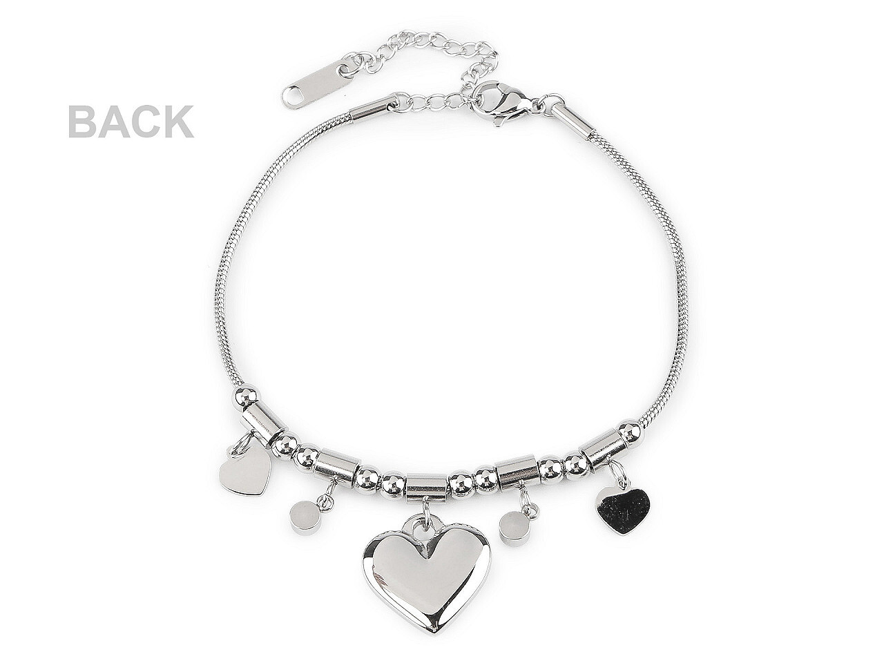 Náramek z nerezové oceli srdce - 1 ks - stříbrná