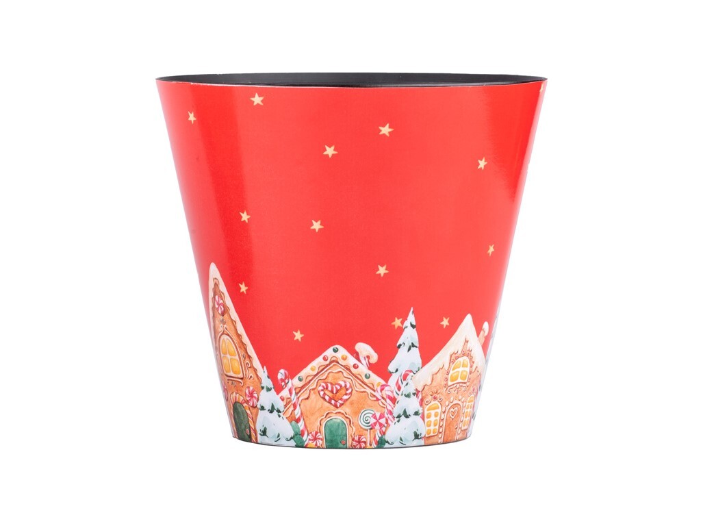 Květináč plastový 210x130x197mm velkýs s vnitřní černou úpravou motiv ván, chaloupky desig perníčky, barevná