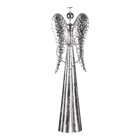 Anděl kovový, se svítícím srdcem (LED), stříbrná barva.