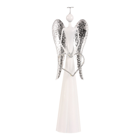 Anděl kovový, se svítícím srdcem (LED), bílá barva.